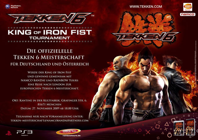 Am Freitag, den 27. November, veranstaltet NamcoBandai in München die Deutsche Tekken-Meisterschaft. Tekken Ihr wisst schon, das ist dieses nicht ganz unbekannte Prügelspiel, das seit (Konsolen-) Generationen für zerstörte Controller, zerbrochene Freundschaften und kilometerlange Juggle-Combos steht. Außerdem hat uns auch die neue Episode mit dem Namen Tekken 6 richtig gut gefallen (wie gut, das könnt Ihr hier nachlesen).