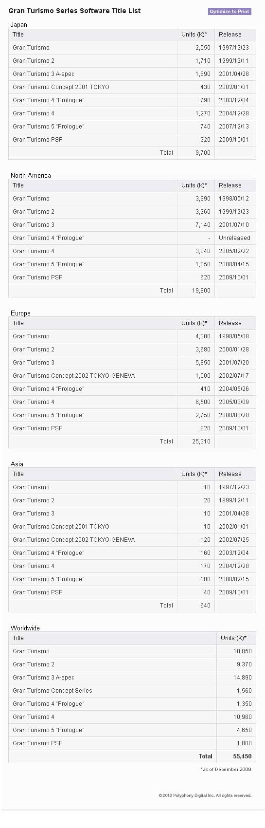 Was ich Meister Yamauchi allerdings übel nehmen würde, wäre eine solch hohe Diskrepanz zwischen japanischem und europäischem Release. Sechs Monate sind durch nichts zu rechtfertigen – außer Polyphony Digital überrascht uns mit einem noch geheimen Rollenspiel-Modus, der mehr Text umfasst als das Story-Schwergewicht Dragon Age: Origins. Und wenn die Herren von Sony noch einen Anreiz für eine fixe Europa-Veröffentlichung benötigen, dann sollten sie mal einen Blick auf die weltweiten Verkaufszahlen der Gran Turismo-Serie werfen (siehe unten) – da liegt Europa mit 25 Millionen Exemplaren weit vor Japan (10 Mio.) und den USA (20 Mio.)!