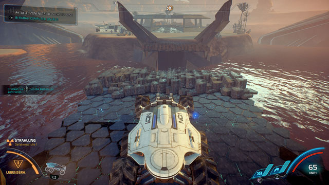Für längere Strecken auf offenem Terrain ist der Nomad sinnvoll, ein Bodenfahrzeug ähnlich dem Mako der Normandy. Über ebene Erde sausen wir schnell von Ort zu Ort, steht ein Berg im Weg, kann auch dieser via Sechs-Rad-Antrieb und zusätzlichem Powerschub erklommen werden. Vorsicht bei Erkundungen: Auf vielen Planeten treffen wir auf die feindlichen Kett. Unser Fahrzeug besitzt zwar Schilde, doch im Gegensatz zum Mako keine Bewaffnung. Wollen wir uns auf eine Reiberei einlassen, steigen wir besser aus. Doch weil der Nomad zusätzlich Schutz vor Strahlung oder Elektrizität bietet, ist es auf einigen Planeten ratsam, ihn nur für absolut notwendige Aktivitäten zu verlassen. Wird die Strahlenbelastung zu hoch suchen wir auch mit dem Nomad sicherere Gefilde. Vielleicht werden diese Gebiete später zugänglich und vielleicht berichte ich beim nächsten Mal davon