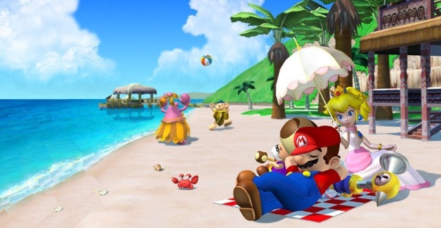 Super Mario Sunshine - Dusch it!Genau das Richtige für eine schnelle Abkühlung: Zusammen mit der Dreckweg-Wasserpistole geht es an den Strand – Prinzessinnen nass machen. Danach wird das Mario Cappy entspannt in die Ecke geworfen und eine Runde durch das kühle Nass geschwommen: Ölverpestung und unangenehme ph-Werte sind auf der Isla Delfino Fremdwörter, natürlich erst nach Marios Saubermann-Aktion.