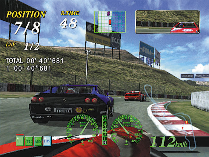 Realismus oder Tod: F355 Challenge dürfte sich wohl auf ewig den Platz für die schwerste Autosimulation auf Konsole gesichert haben – eine so realistische Steuerung wird sicher so schnell kein anderer Entwickler inszenieren. Da passt es ins Bild, dass Ihr die knackige Herausforderung lediglich aus der Innenperspektive angehen könnt.
