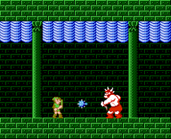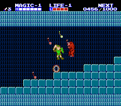 Anderseits, das Aufleveln und das selber bestimmen können ob man mehr Magie, Stärke oder Lebensleiste haben will hat eine leichte Rpg Schlagseite, den Kampfaufzwingenden Dämonen auf der top-Down Karte kann man aus dem Weg gehen ( wenn man es denn schafft…) ansonsten wechselt das Game in den Dörfern, Paläste und für fast alles was man mit der eigenen Ausrüstung erledigen soll in der 2D Perspektive, sehr innovativ für die Zeit, Schelte dafür hat Hr. Miyamoto zwar auch bekommen, aber auf jeden Fall hebt sich The Adventure of Link bei seiner Gestaltung sehr von seinem Vorgänger ab, und blieb auch so der Einzelgänger der Serie, der Nachfolger war nämlich “tradizioneller”, die späteren Spiele wechselten sogar gänzlich die Perspektive, wenn man erst mal die Tragbaren ausklammert.