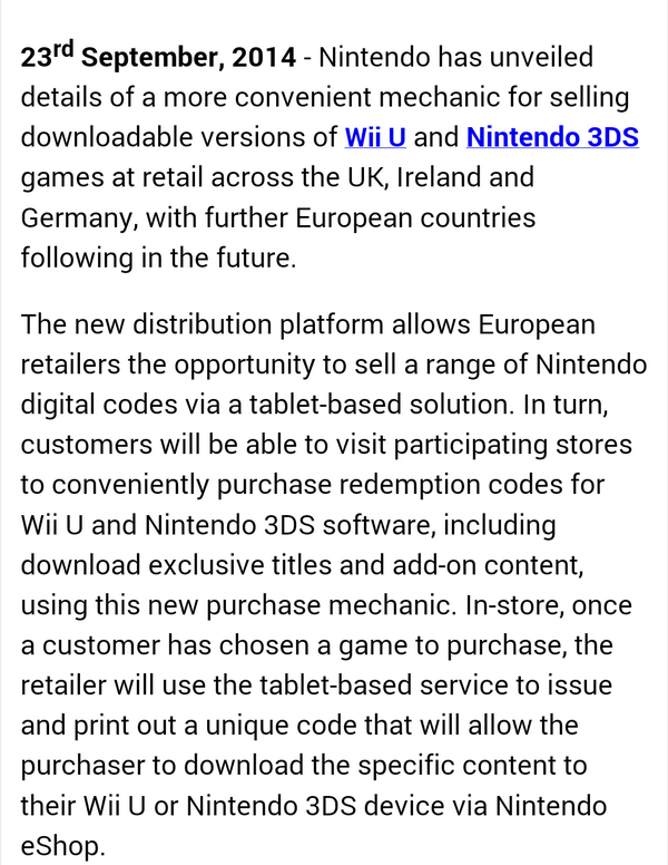 FuffelpupsTeilnehmerNintendo bringt den eShop in den Retailhandel, das wird interessant. Somit bekommen Downloadtitel etwas mehr Aufmerksamkeit und es ist super für alle die keine Lust auf Restgeld im eShop haben. Die können nun Software passend im Laden bezahlen ohne eine Kredit Karte benutzen zu müssen.