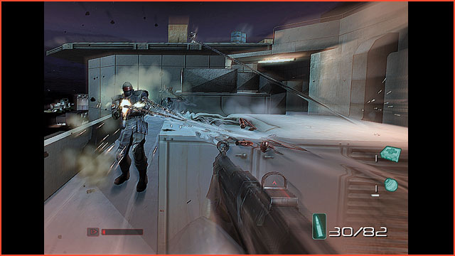 im Kinohit Matrix). Berühmt machen das Feature aber andere: Die Max Payne-Reihe inszeniert Third-Person-Geballer in stylisher Slow-Motion, die F.E.A.R.-Shooter (Bild) bieten eine Zeitlupen-Funktion, um der anspruchsvollen KI Herr zu werden. Unterstützt von Sound-Effekten und optischen Gimmicks wähnt sich der Spieler als wieselflinker Tänzer in einer ansonsten trägen Zeitsuppe. Er zielt, ballert, trifft, hackt und metzelt, während der Feind hilflos zusehen muss – die perfekte Allmachtsfantasie!