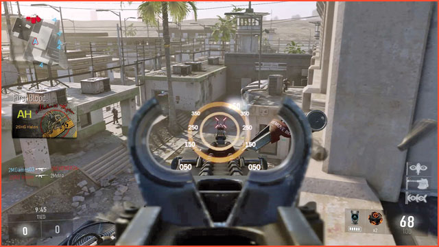 Das erste Konsolenspiel, in dem Ihr eine Zielansicht zuschalten könnt, ist das vom indizierten Lightgun-Shooter Virtua Cop inspirierte und ebenfalls indizierte GoldenEye für das N64. Den ersten deutlichen Unterschied zwischen gezieltem und ungezieltem Feuern bringt der PC-Shooter Vietcong: Schießt Ihr aus der Hüfte, trefft Ihr ungenau. Die Kimme-und-Korn-Ansicht ermöglicht gezielte Treffer auf Kosten eines eingeschränkten Sichtfeldes. Heute sind Shooter, in denen nur Snipergewehre über eine Zielfernrohr-Ansicht verfügen (wie Counter-Strike) die Ausnahme. In modernen Titeln wie Call of Duty (Bild) ist das Zielen über Kimme und Korn üblich.