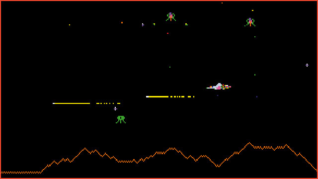 Ob Spacewar oder Pong – in der Videospiel-Urzeit ist das Spielfeld gleichbedeutend mit dem Bildschirmausschnitt. Um dem Gamer die Illusion einer größeren und zusammenhängenden virtuellen Welt zu vermitteln, muss eine neue Technik her: das Scrolling. Vorreiter ist 1974 das Arcade-Rennspiel Speed Race, dessen Asphalt-Pisten von oben nach unten am Flitzer des Spielers vorbeirauschen. Das erste Mal frei nach links oder rechts fliegen wir 1980 in dem Shootem-Up-Meilenstein Defender (Bild) – die einzelnen Levels bilden dabei eine Art Kreisbahn, haben also weder Anfang noch Ende. Das Element räumliche Tiefe debütiert 1982 in Irems Moon Patrol: Mehrere Landschafts-Ebenen bewegen sich dafür unterschiedlich schnell, das sogenannte Parallax-Scrolling ist geboren.