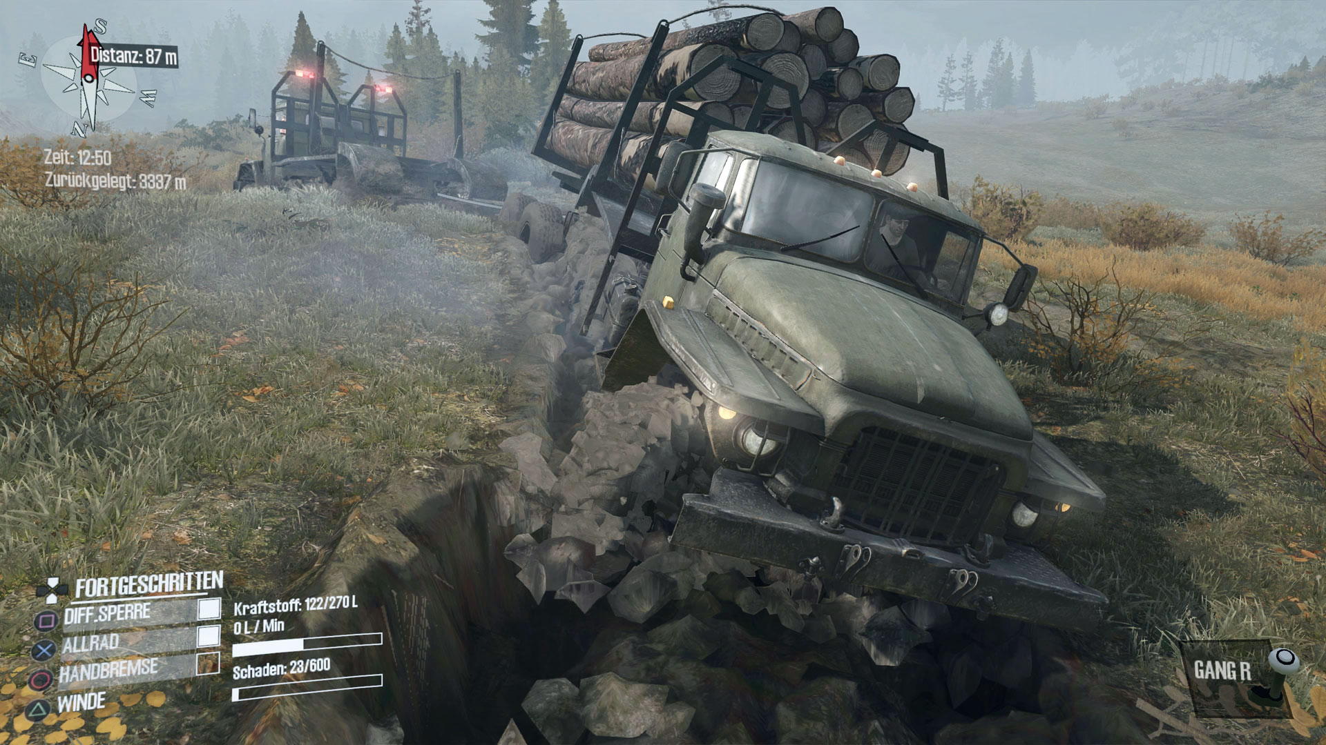 Auch die harte Arbeit auf Baustellen wird simuliert: Power Shovel (PSone) von 2001 versetzt Euch ans Steuer eines Baggers, mit dem Ihr Erde von A nach B schaufelt. Für Abwechslung sorgen Bonuslevels, in denen Ihr Hütten abreißt oder übergroße Curry-Gerichte anrichtet. Das Baugewerbe wurde zuletzt mit Astragons Bau-Simulator-Reihe für Mobile und Konsole passend bedient, denn hier stehen vielfältige Aufgaben mit unterschiedlichen Baumaschinen von der Straßenwalze bis zum Kran an. Die Zunft erhielt mit UIGs Baumaschinen: Die Simulation zuletzt auch einen zweifelhaften Genrevertreter für PS4. Derselbe Hersteller hat obendrein Forstwirtschaft: Die Simulation für PS4 verbrochen, das Euch zum Holzfäller macht: Technik und Grafik auf PS2-Niveau lassen schaudern. Weit besser macht es Spintires: Mudrunner und dessen erweiterte American Wild-Version, bei dem Ihr Bäume nicht fällt, sondern transportiert. Mit schweren Trucks liefert Ihr Stämme an Lagerstätten aus. Die eigentliche Herausforderung bildet der schlammige Untergrund, der nach guter Routenplanung verlangt.