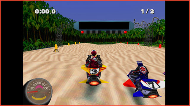 In Jet Rider 2 schwingt Ihr Euch auf ein Hover Bike und düst damit über Rennstrecken – zu Land und zu Wasser. Gegenüber dem Vorgänger zeichnet sich der zweite Teil durch mehr Strecken und einen anspruchsvolleren Schwierigkeitsgrad aus.