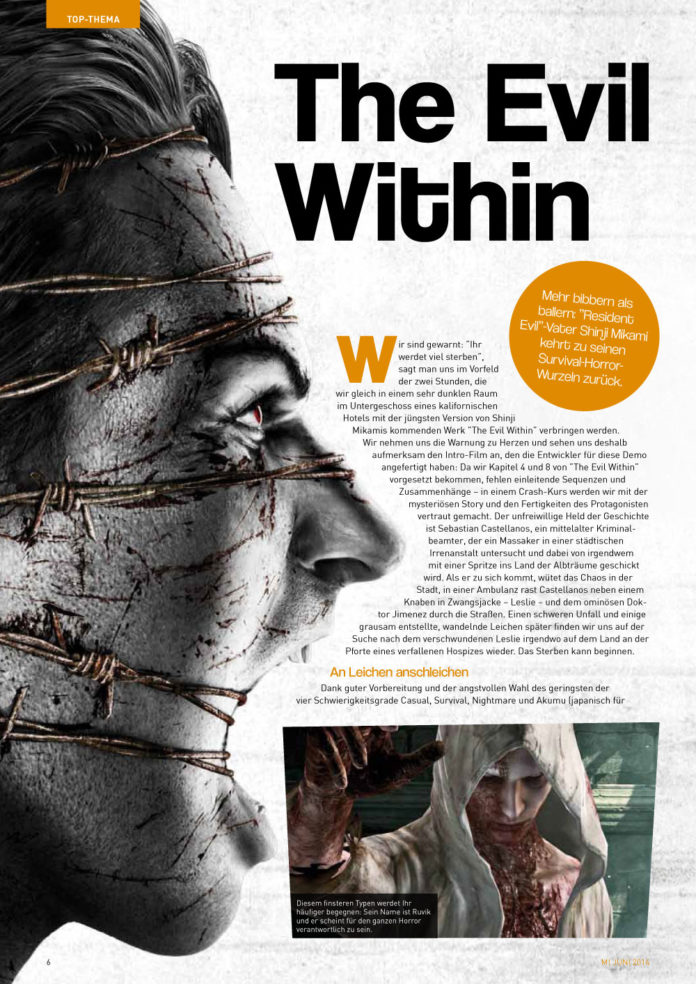 “Das bessere Resident Evil?” fragen wir auf dem Titelblatt der neuen M! Games – gemeint ist damit The Evil Within, das unter den Fittichen von Mr. Survival Horror Shinji Mikami entsteht. Ex-MAN!AC-Chef und M!-Autor Stephan Freundorfer spielte in Kalifornien die neueste Preview-Version und erlebte dabei eine Achterbahnfahrt der Gefühle: Beklemmung, Angst, Ohnmacht, Erlösung – Resident Evil-Erfinder Mikami kehrt eindrucksvoll zurück zu seinen Horror-Wurzeln, nachzulesen auf dicken 6 Seiten!