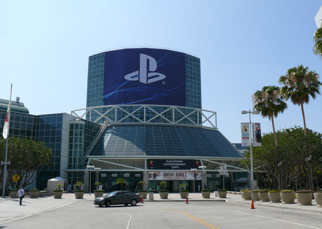 So leer ist der Vorplatz der wichtigsten Videospielmesse der Welt zwei Tage vor dem Start. Von weitem kündet lediglich das große PlayStation-Banner vom bald anstehenden Messe-Rummel.