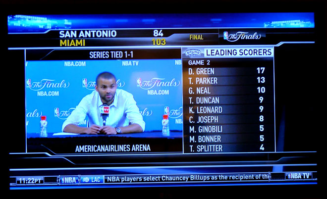 Und während Michael am Laptop mit der Heimat Kontakt pflegt, lohnt sich für Sportfan Matthias ein Blick in den NBA-Kanal, wo das zweite Spiel der NBA-Finalserie (San Antonio vs. Miami) haarklein analysiert wird.