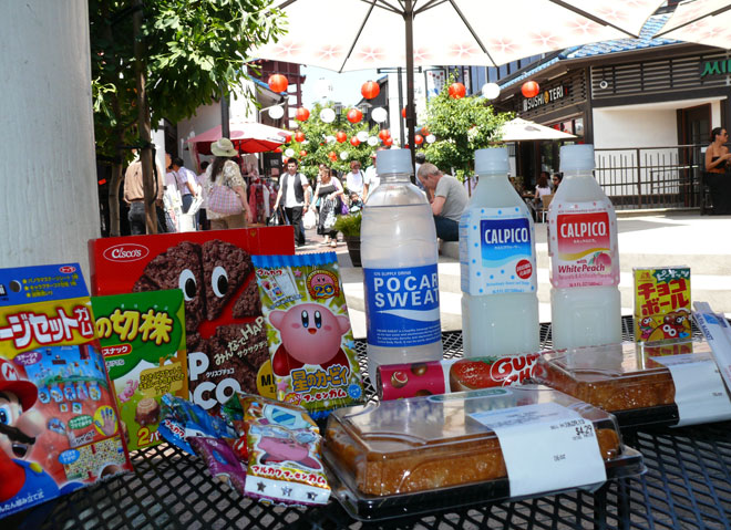 Zwischenstopp in Little Tokyo – Matthias kann nicht widerstehen und lädt seine Einkaufstasche mit Inari-Taschen, Süßkram, Mario- und Kirby-Kaugummi und diversen japanesischen Kaltgetränken voll. Mmmh lecker!