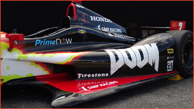 Beim Warten auf die Bethesda-Konferenz durften wir einen Blick auf diesen mit Doom-Schriftzug geschmückten Formel-1-Raser (oder ist es doch ein Indy Car?) werfen.