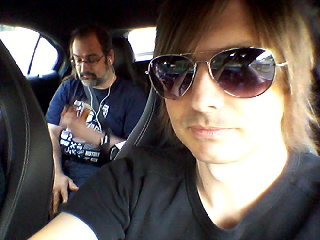 Olli lässt auf der Autobahn niemand anders ans Steuer – er fährt so gut, dass er dabei sogar Fotos knipsen kann. Glaubt er. Denn was man darauf kaum erkennt: Ulrichs iPod voller K-Pop-Ohrenkitzler, mit denen er die schäbige Rock-Attacke wegignoriert.