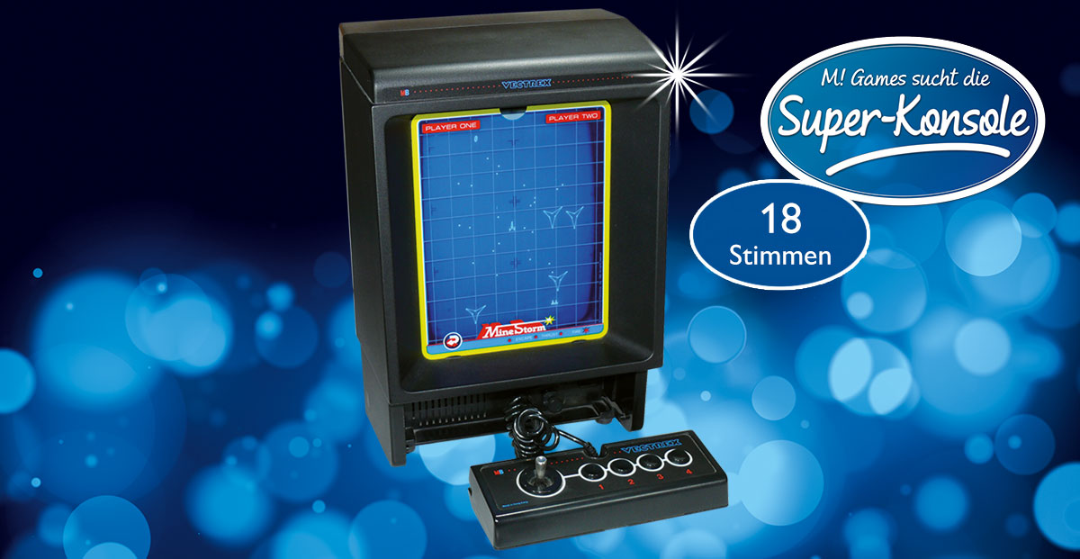 Das Vectrex wirkt auf den ersten Blick wie ein geschrumpfter Arcade-Automat, denn praktischerweise enthält diese spezielle Konsole bereits einen Bildschirm mit 24 cm Bilddiagonale. Besonders macht das Gerät ebenso, dass es auf traditionelle Pixel-Optik verzichtet. Stattdessen setzt der Hochkant-Kasten 1982 auf schlichte, jedoch elegante Vektorgrafik, bei der ein Elektronenstrahl leuchtende (weiße) Linien auf den Monitor zeichnet. Mit transparenten Plastikfolien, die man über den Bildschirm legt, wird Farbe simuliert. Das Aus kommt relativ schnell: Zu wenige Käufer erliegen dem Charme der Vektor-Konsole, trotz kleiner Preise. Kurz nach dem Videospiele-Crash 1984 zieht Hersteller GCE endgültig die Reißleine. Zwar erscheinen offiziell nur knapp 30 Spiele (am prominentesten ist der gelungene ”Asteroids”-Klon ”MineStorm”), jedoch hält eine rege Hobbyszene dem Vectrex bis heute die Treue mit Homebrew-Spielen.