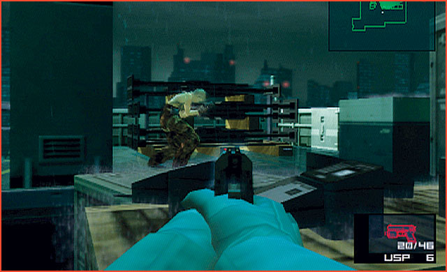 Snakes Widersacherin sucht geschickt hinter Planen Schutz, versteckt sich und ist oft nur über ihren Schatten aufzuspüren. Snake versucht aus der Deckung heraus, die Dame zu erwischen.