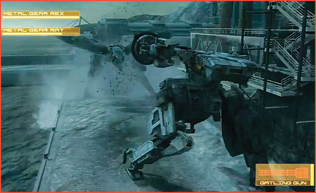 Solid Snake steuert auf Shadow Moses Island den ramponierten Oldtimer Rex und verpasst Liquid Ocelot im modernen Ray eine Tracht Prügel, bei der selbst Godzilla große Augen machen würde.
