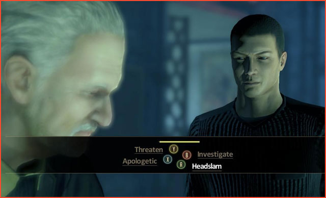 Das Dialogue-Stance-System ermöglicht dem Spieler bei Konversationen eine von drei möglichen Antworten zu geben. Während sich diverse NPCs von einer aggressiven Haltung nicht abschrecken lassen, können einige sehr wohl den Schwanz einziehen und gewünschte Informationen preisgeben.