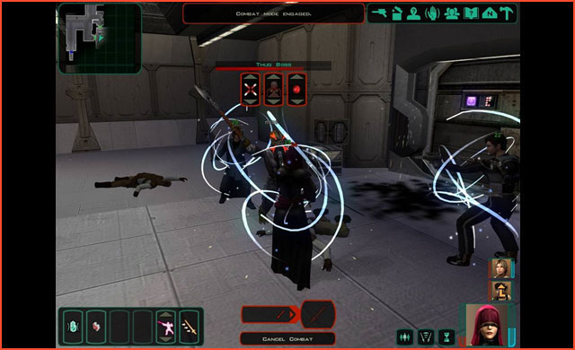 Strahlender Retter oder zwiespältiger Antiheld? Das Gesinnungssystem in Star Wars: Knight of the Old Republic gibt uns die Möglichkeit, beide Seiten der Medaille zu erkunden. Leider ist kaum ein gesundes Mittelmaß möglich, da unser Charakter massiv an Stärke zulegt, sofern wir uns einer der beiden Extreme nähern.