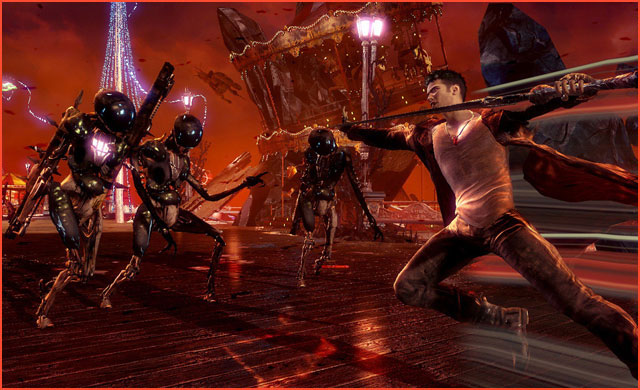 Dante (vor allem der neue) hat eine große Klappe, gibt seinen Knarren Namen und zeigt sich zu Beginn von DmC: Devil May Cry ungeniert beim Liebesspiel mit zwei Dämonen-Stripperinnen. Ein Antiheld, der den zweiten Vornamen Mister Over The Top redlich verdient hätte.