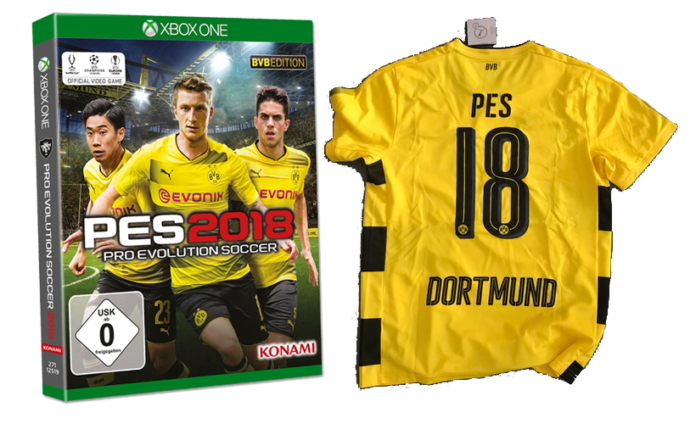 Fußballfans aufgepasst: Zusammen mit Konami verlosen wir je drei Mal die BVB Edition von PES 2018 für die Xbox One sowie ein dazugehöriges Trikot der Borussia – siehe oben.