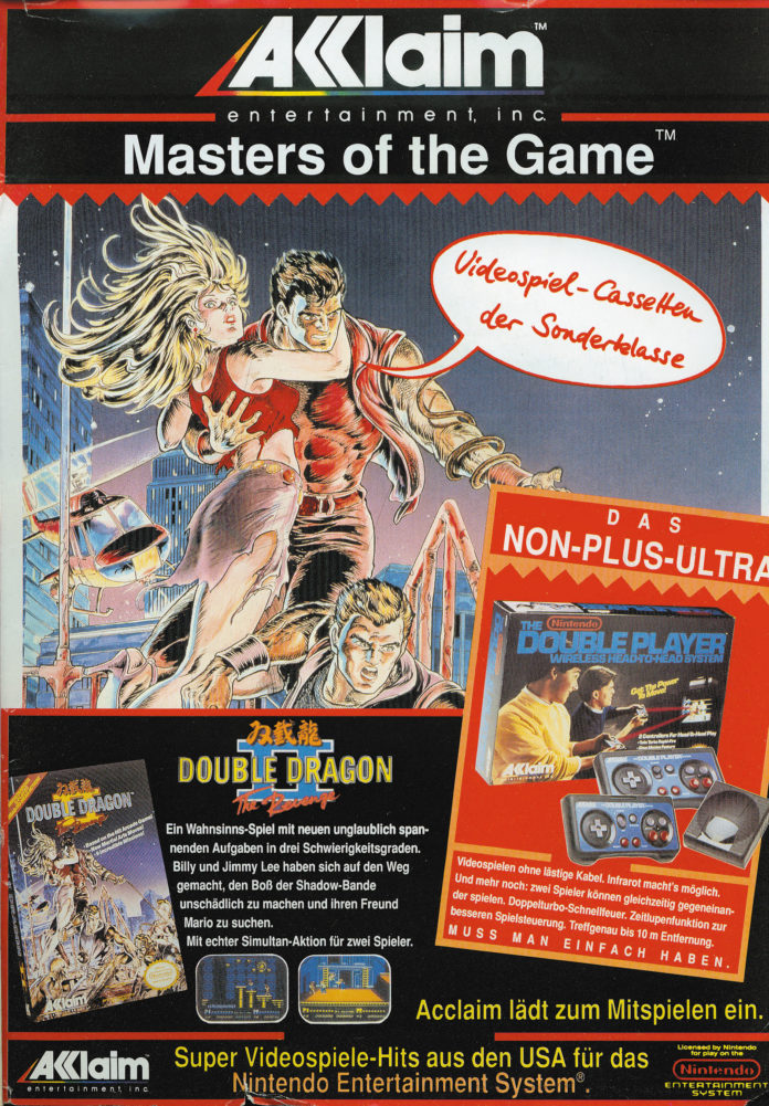 Double Dragon II habe ich damals auf meine Freundin gespielt, kam ja da Anfang 1990 raus. Feines Spiel damals, das aber mit den Nachfolgern immer schlechter wurde.Was ich aber bei der Werbung viel interessanter finde. Die Infarotcontroller für den NES. Hatte ich gar nicht mehr auf den Schirm.Jedenfalls kenne ich keinen von damals der so etwas für das NES hatte.
