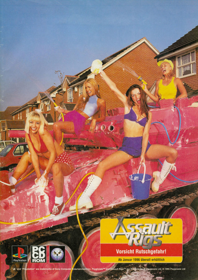 Ach ja, zum Glück waren die PS1 Spiele damals überzeugender als deren Werbung. Es spricht ja nix gegen das obige Motiv, das mir übrigens auch noch gut in Erinnerung geblieben ist aber Infos zum Spiel sind = 0. Assault Rigs habe ich aber nie gespielt. Wer hat schon Lust einen pinken Panzer zu putzen.