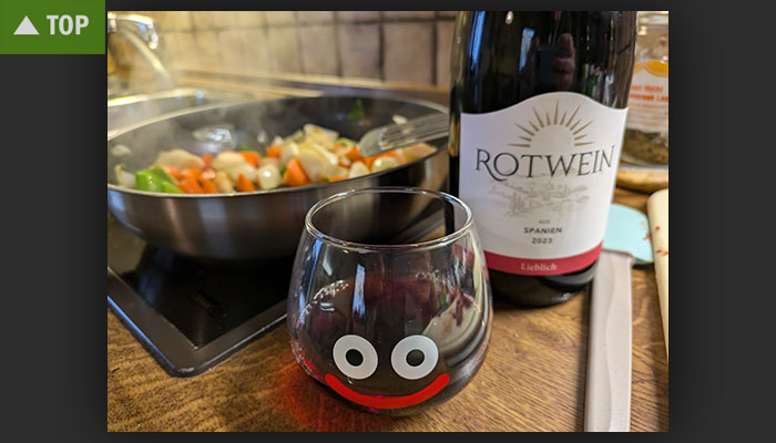 Am Wochenende war Kochen angesagt – großes Vorweihnachtsessen. Mit Slime-Glas und dem guten Aldi-Kochwein geht das gleich viel besser.