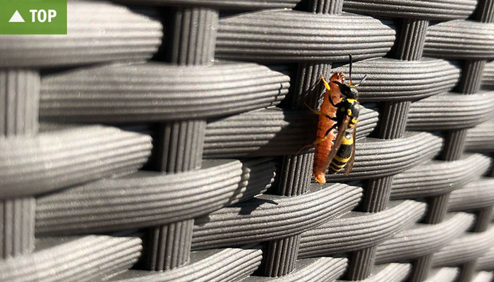 …habe ich diese Woche eine Gelbe Schlupfwespe (zumindest halte ich es für eine) in Aktion gesehen. Beeindruckend, wie die zierliche Wespe eine dicke Raupe mühelos durch die Gegend wuchtet!