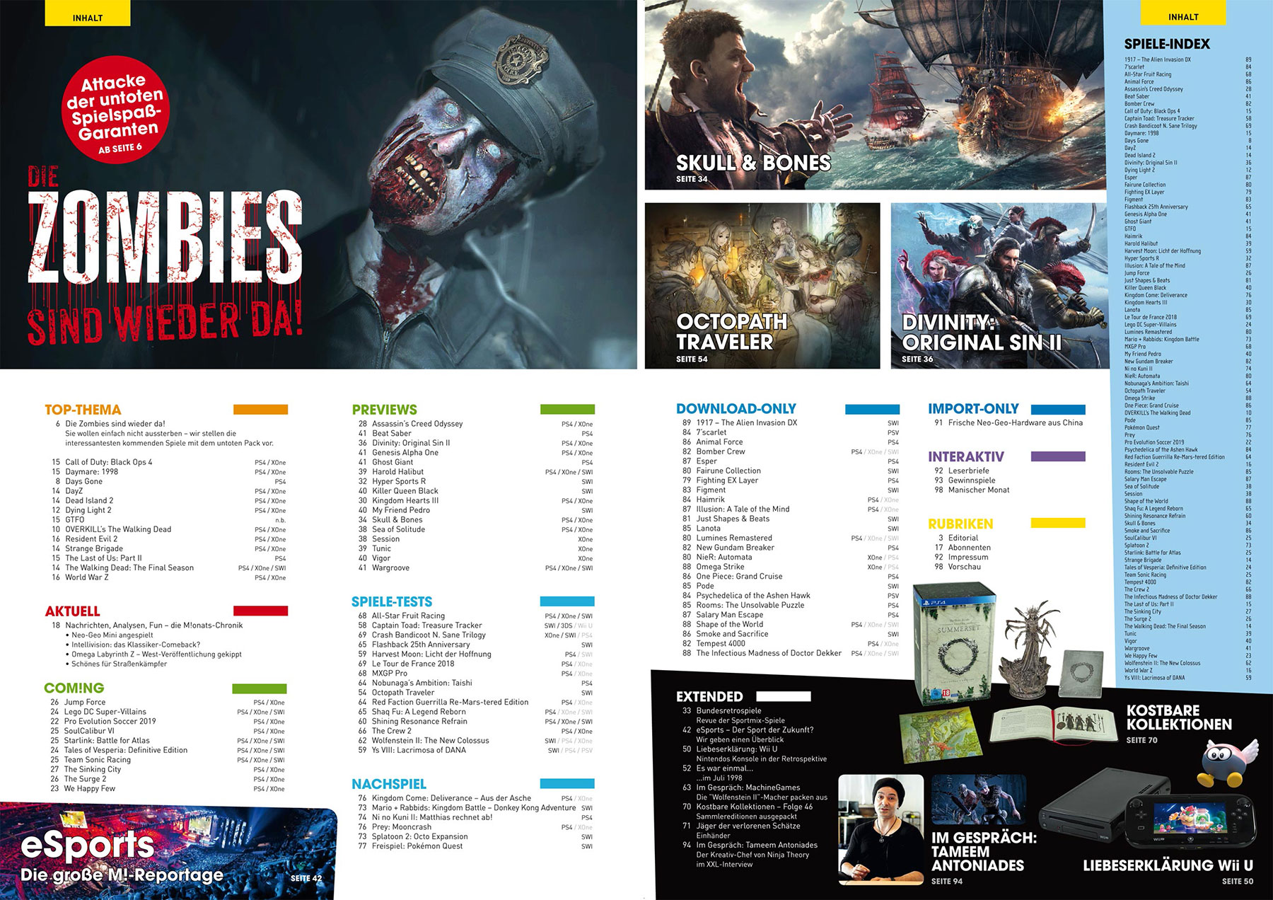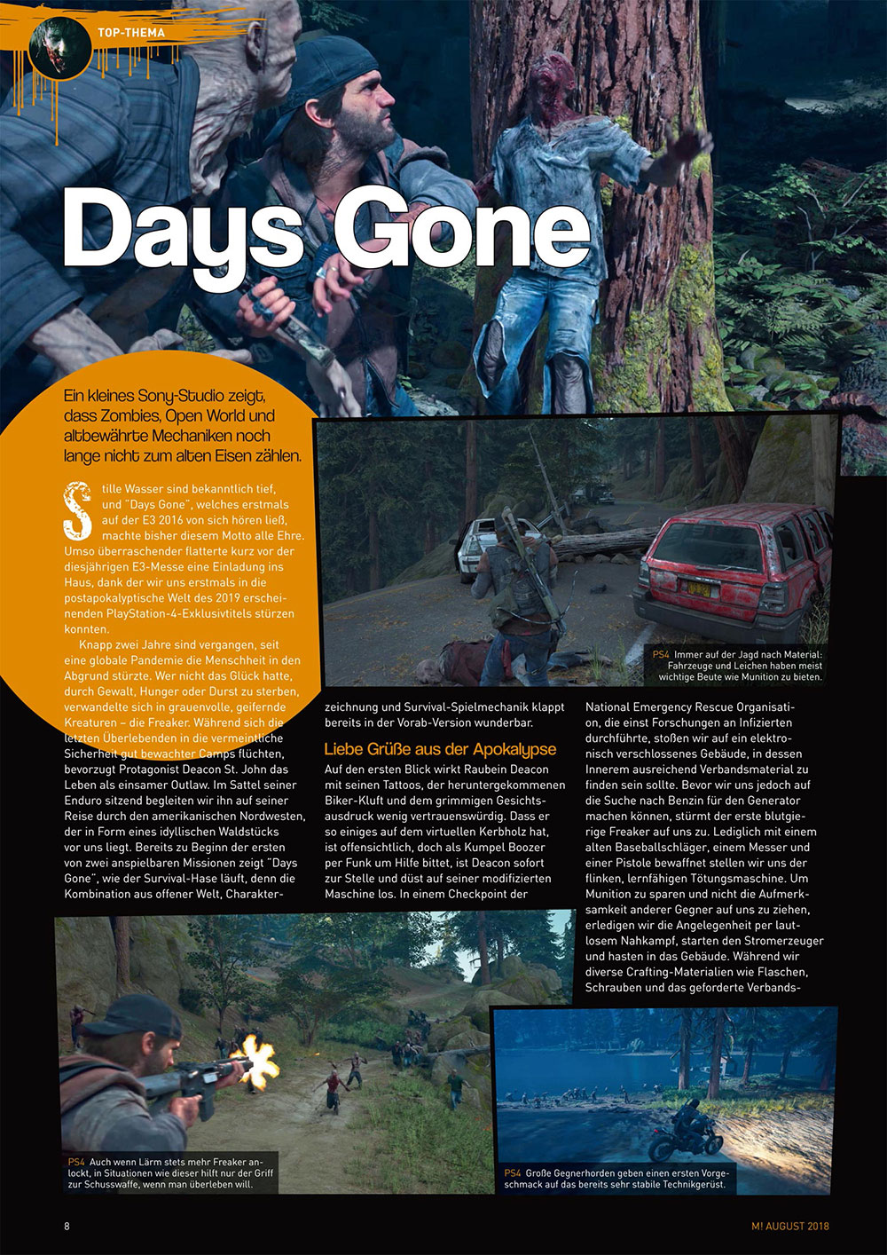 Selten hatten wir so wenig Probleme mit dem vielzitierten Sommerloch – auch die M! Games August 2018 platzt aus allen Nähten: Hurra, hurra, die Zombies, die sind wieder da – wir haben Sonys Exklusiv-Perle Days Gone angespielt, neue Infos zu Dying Light 2 und eine Vorschau zum Resident Evil 2-Remake. Dazu u.a. The Walking Dead, The Last of Us: Part II, World War Z und Strange Brigade – von Adventure über Action-Abenteuer bis Team-Shooter ist alles dabei.