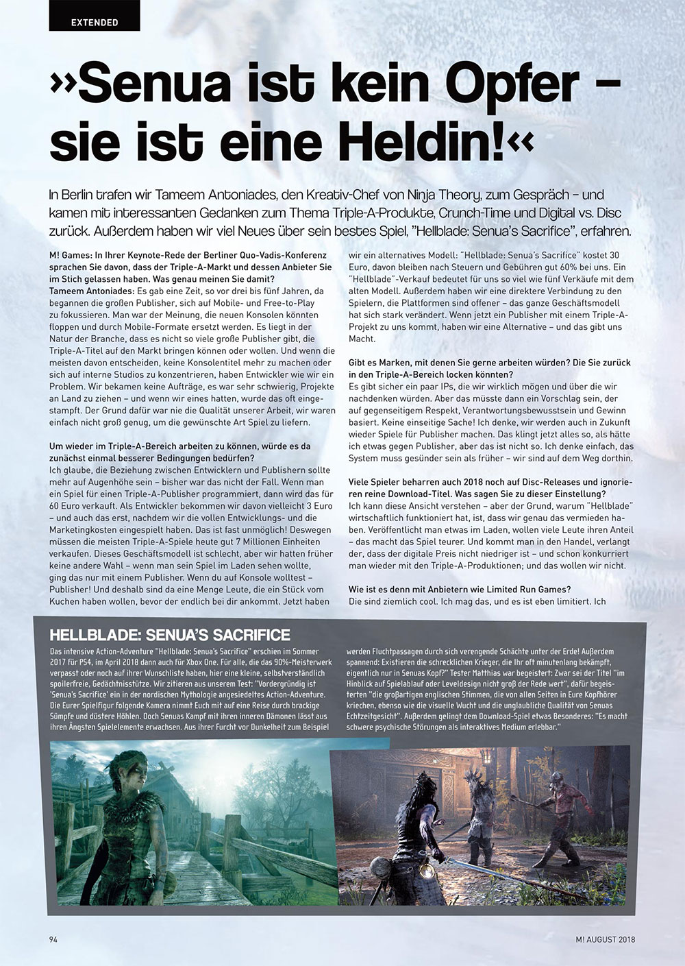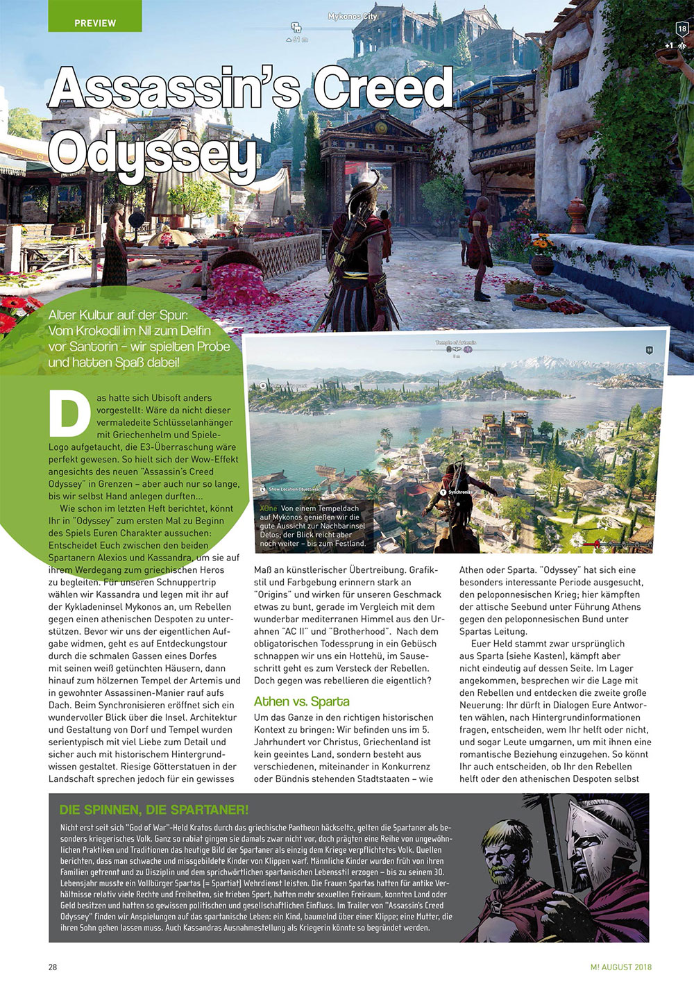 Spannend sind auch die anderen Preview-Themen dieser M! Games: Wir haben Assassin’s Creed Odyssey ausführlich gespielt und verraten, wie Ubisoft die Qualität von Origins noch übertreffen will. Außerdem haben wir Larian Games in Belgien besucht, um Divinity: Original Sin II unter die Lupe zu nehmen. Nicht minder interessant sind das hinreißend aussehende Kingdom Hearts 3, die Piraten-Seeschlacht Skull & Bones sowie unser großer Ausblick auf die heißestes Indiegames 2018/19.