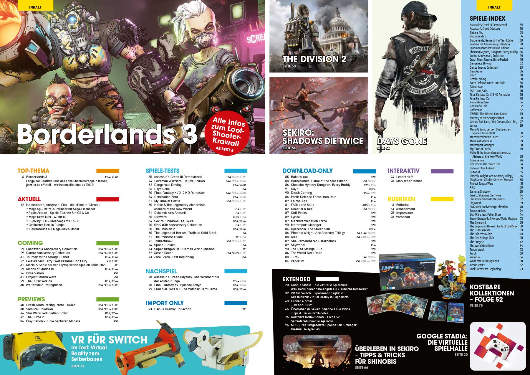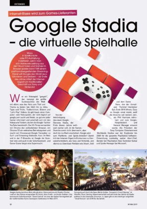 In der Extended-Sektion schließlich blicken wir ganz genau auf Googles Gaming-Streamingdienst Stadia, der nicht weniger als das Spielen revolutionieren und unsere geliebten Konsolen abschaffen will. Eine Revolution zum Selberbauen soll Nintendos Labo-VR-Set sein – wir haben gebastelt und ausführlich mit Elefant, Kamera & Co. gedaddelt. Retro-Fans legen wir die neue NUSS-Folge ans Herz, die sich dem nie für Konsolen umgesetzten Shoot’em-Up R-Type Leo widmet.