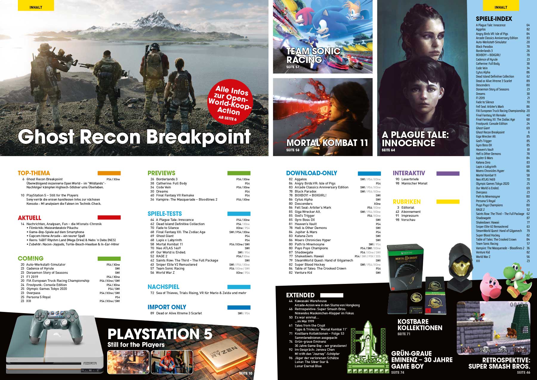 Den Test-Teil machen Mutanten, Ratten, Zombies, Riesendildos und blutige Fatalities unsicher. Oder anders: Freut Euch auf umfangreiche Besprechungen von RAGE 2, A Plague Tale: Innocence, World War Z, Saints Row: The Third – The Full Package und Mortal Kombat 11. Und der rasende Igel hat kurz vor Redaktionsschluss auch noch mit Team Sonic Racing den M!-TÜV aufgesucht – ob wir etwas zu beanstanden hatten? Prüfer Ulrich erzählt es Euch!