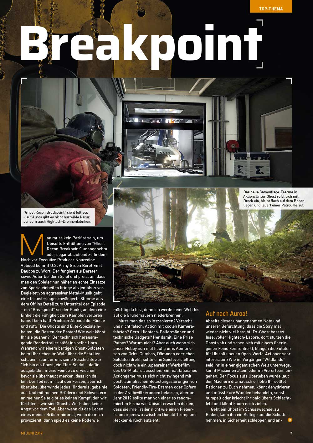 Wo vor der E3 in den letzten Jahren noch häufig News-Langeweile herrschte, geht diesmal die Post ab. Ubisoft etwa kündigte eine neue Ghost Recon-Episode an: Die heißt Breakpoint und sieht trotz einer offenen Welt spektakulär aus – freut Euch auf einen Hightech-Koop-Shooter mit ordentlich Taktik-Einschlag. Diese überraschende Ankündigung war uns daher gleich die Titel-Story wert.