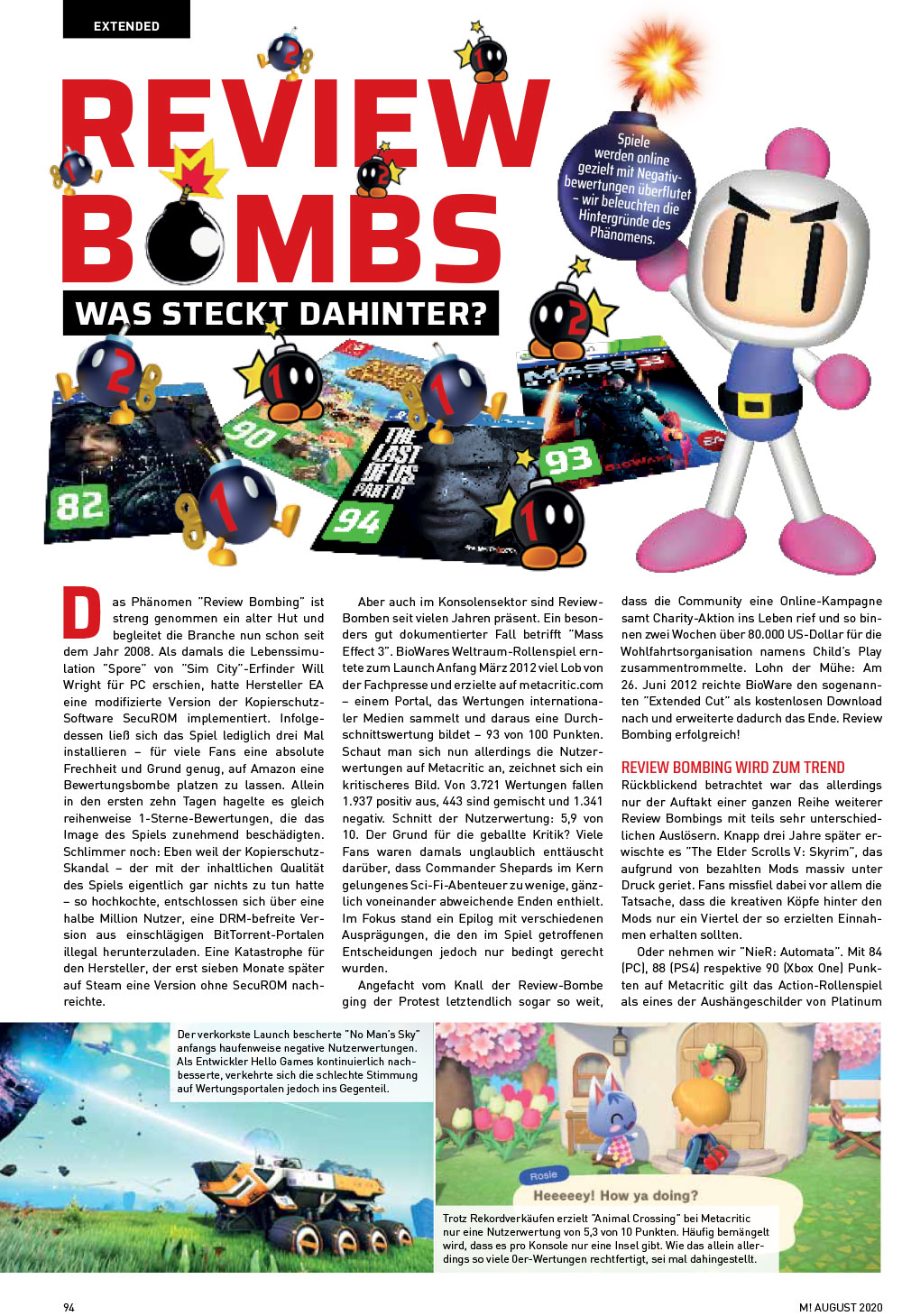 Schließlich hätten wir da noch den dicken Extended-Teil als Nachtisch: Von den Corona-Auswirkungen auf die Games-Industrie über das traurige Review-Bombing-Phänomen und dem lahmenden Internet-Ausbau in Deutschland bis hin zu den neusten Collector’s Editions reicht das schmackhafte Angebot.