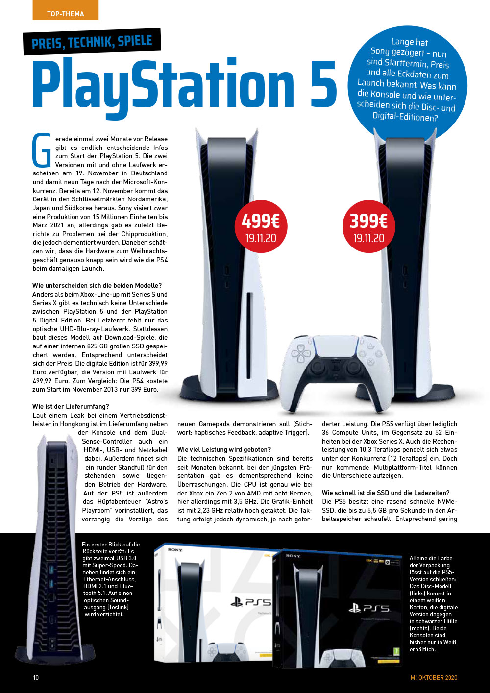 Endlich wissen wir Bescheid! Knapp vor unserem Redaktionsschluss ließ Sony die Hüllen fallen und veröffentlichte den Releasetermin, die Preise und das Launch-Line-up für die PlayStation 5 und die PS5 Digital. Und natürlich wissen wir mittlerweile auch über die Xbox Series X sowie die deutlich günstigere Xbox Series S Bescheid! In unserem Top-Thema beantworten wir die wichtigsten Fragen zu den neuen Konsolen und geben Euch einen Überblick vor dem Launch im November.