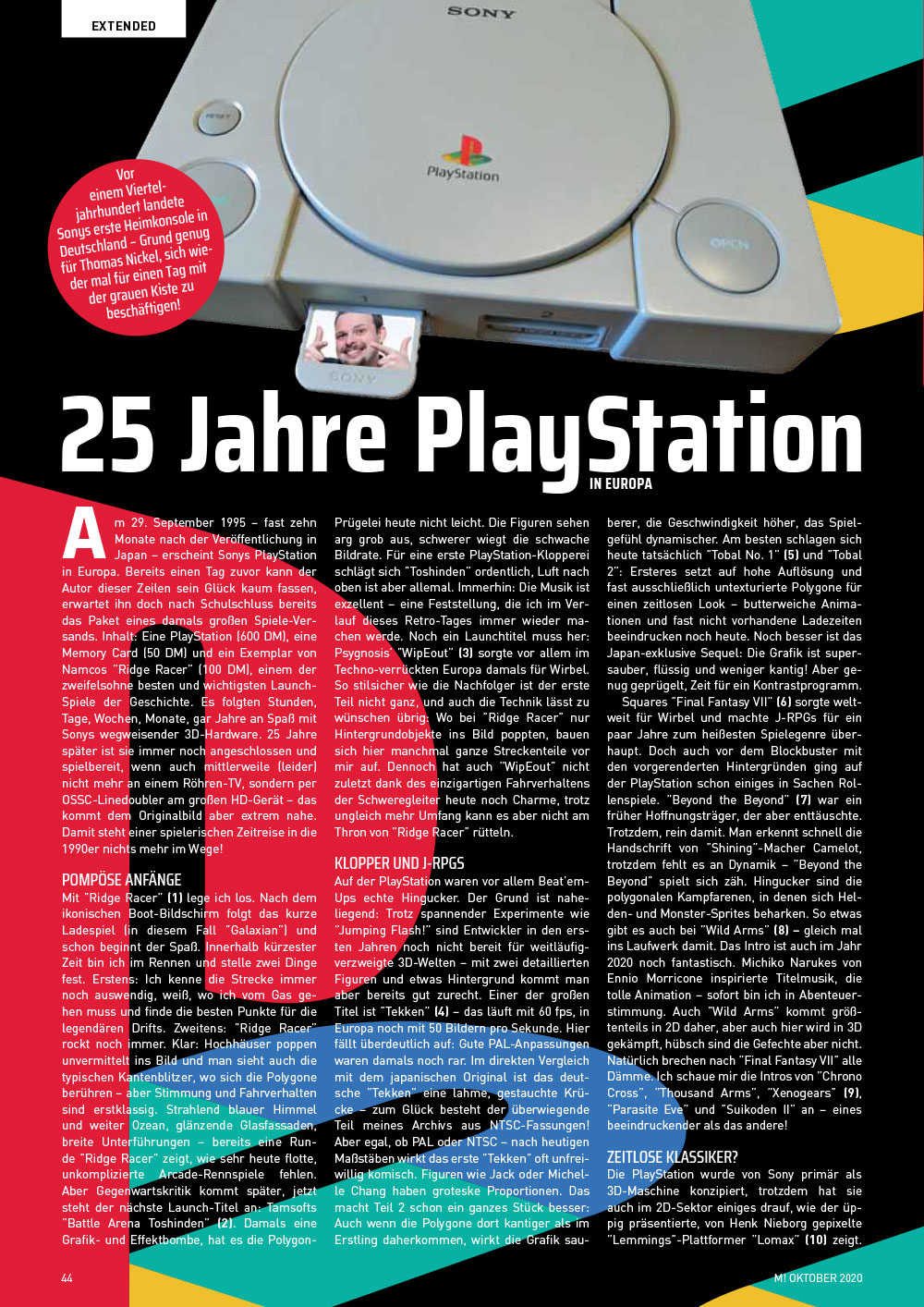 Nicht minder interessante Themen warten in Extended: Unser freier Autor Thomas Nickel holt in 25 Jahre PlayStation in Europa den grauen Kasten aus dem Schrank und zockt alte Klassiker, in der Rubrik Jäger der verlorenen Schätze widmet sich Winnie Forster Daimakaimura (Ghouls ’n Ghosts) für NEX SuperGrafx.