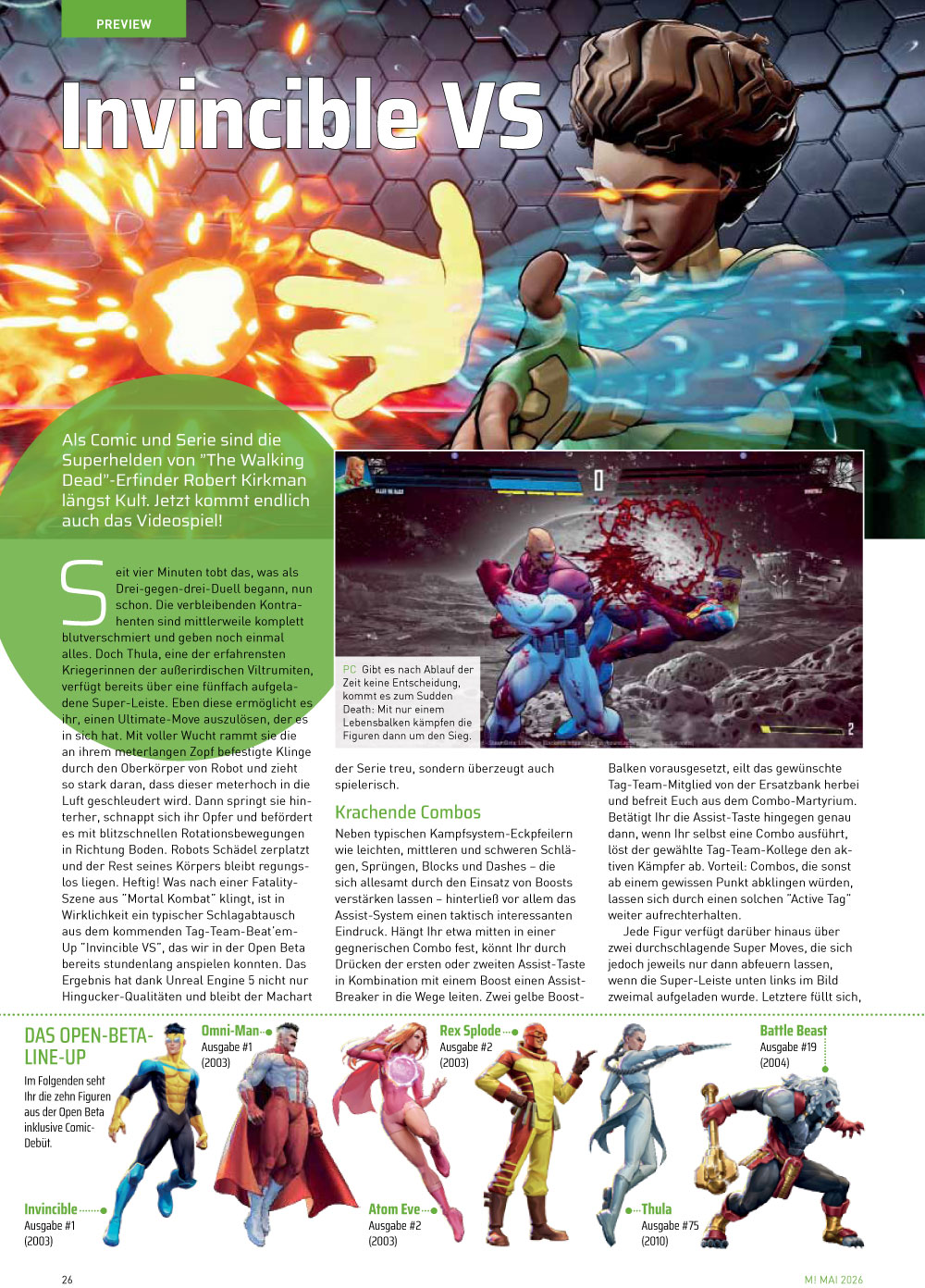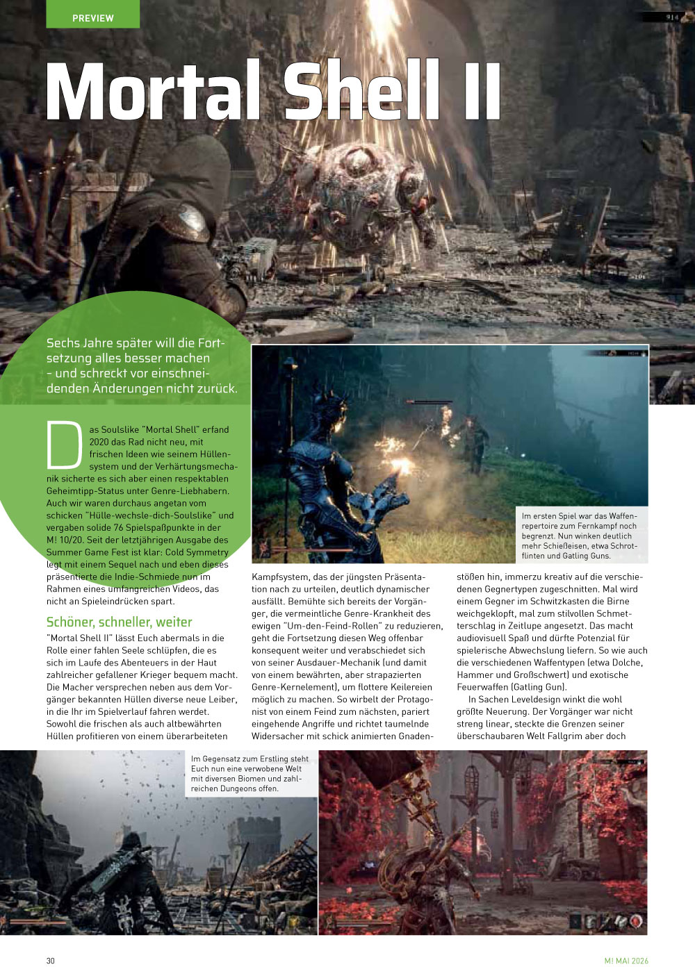 Im Preview-Bereich versorgen wir Euch unter anderem mit Hands-on-Eindrücken zur blutigen Superhelden-Klopperei Invincible VS. Auch hier haben wir mit den Schöpfern geplaudert, unter denen sich einige mit Killer Instinct-Erfahrung tummeln – nicht die schlechteste Grundlage! Darüber hinaus analysieren wir die aktuellen Spielszenen des vielversprechenden Soulslikes Mortal Shell II und tauchen ein in die Fantasy-Welt von No Rest for the Wicked, das Fans von Elden Ring und Diablo gleichermaßen ansprechen dürfte. Außerdem geben wir Euch einen Überblick, was sich beim letzten Xbox Partner Preview so alles getan hat.