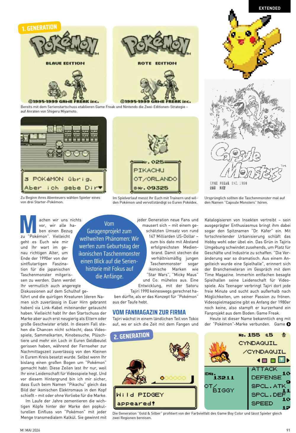 Bleibt noch der Extended-Bereich, in dem wir 30 Jahre Pokémon mit einem XXL-Jubiläums-Special feiern. Erkundet mit uns die Anfänge der Taschenmonster und ihren globalen Siegeszug. Darüber hinaus gibt es endlich wieder eine neue Folge unserer NUSS-Retro-Artikelreihe, in der wir Nie umgesetzte Spielhallen-Schlager vorstellen. Diesmal im Fokus: A.B. Cop. Und schließlich blicken wir auch diesen Monat in Es war einmal… wieder 20 Jahre zurück in die unsere Heftgeschichte.