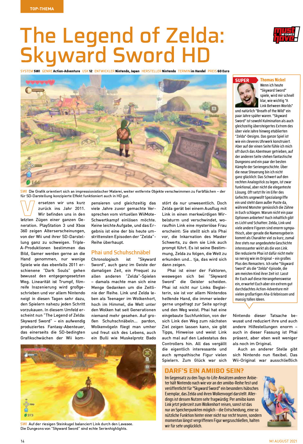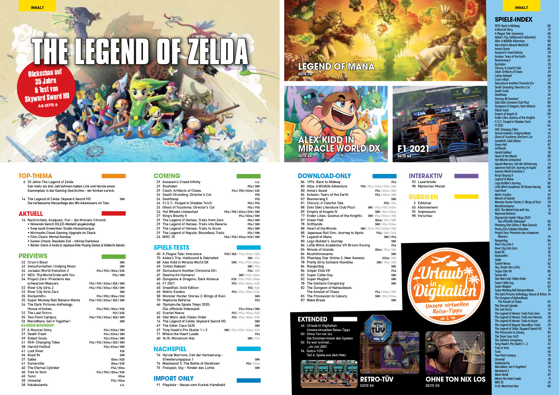 Unglaubliche 35 Jahre hat Nintendos Vorzeige-Abenteuer-Serie The Legend of Zelda bereits auf dem Buckel. Wir feiern das Jubiläum in unserem Top-Thema und bringen neben einem XXL-Special zur Spiele-Reihe auch den Test zum aktuellen Switch-Teil The Legend of Zelda: Skyward Sword HD. In unserer Reportage beleuchten wir unter anderem die Serien-Erfolgsformel und die -Historie, lassen M!-Redakteure prägende Zelda-Erlebnisse ausgraben und blicken auf Links Ausflüge in TV und fremde Konsolen.