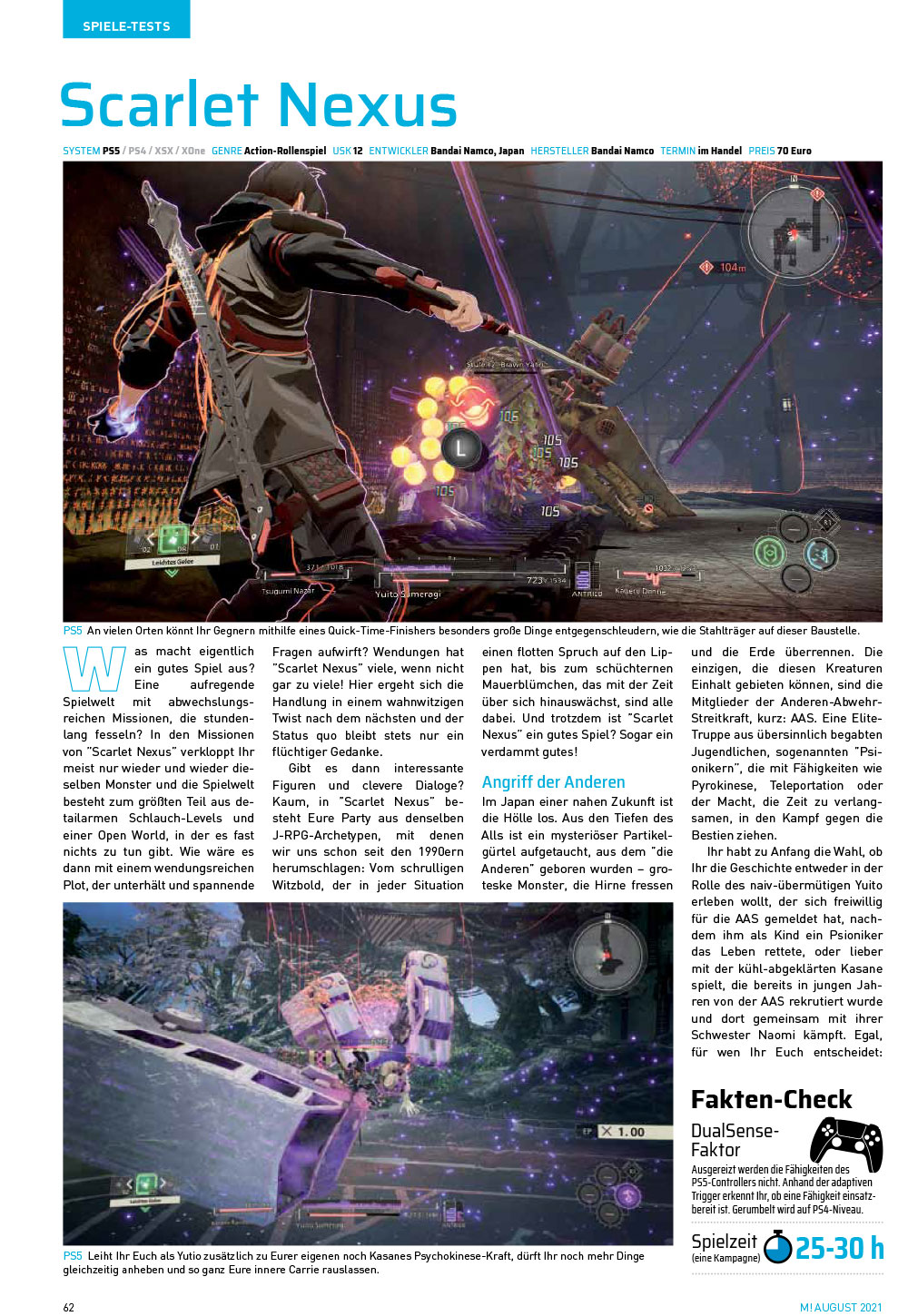 In der Abteilung Test geht es zum Beispiel mit Monster Hunter Stories 2: Wings of Ruin auf die Rücken fantastischer Wesen, in Scarlet Nexus in den Kampf gegen groteske Aliens, in F1 2021 endlich auf die Next-Gen-Piste, in Alex Kidd in Miracle World DX zurück in die Pixel-Vergangenheit und in Cotton Reboot! und Dariusburst Another Chronicle EX+ frönen wir unserer Shoot’em-Up-Leidenschaft. Auch bei den Download-only-Titeln warten einige Leckerbissen, etwa das herausragende Gothic-Metroidvania Ender Lilies: Quietus of the Knights, das Japan-Rollenspiel Legend of Mana und das außergewöhnliche Chicory: A Colorful Tale.