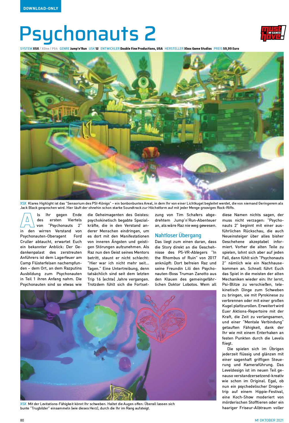 Ich habe mein Heft eben am Kiosk gekauft und mich über die Wertung von Psychonauts 2 sehr gefreut.