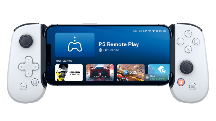 MERING • Ende Juli veröffentlichte der kalifornische Zubehörhersteller Backbone Labs die PlayStation Edition seines bewährten Mobile-Gaming-Controllers Backbone One. Das Gerät funktioniert genau wie die bereits erhältlichen Varianten: Man zieht den flexiblen Mittelteil auseinander, steckt das iPhone (ab Version 6s) in den rechts vorzufindenden Lightning-Adapter, schiebt alles wieder zusammen und hat dann Zugriff auf alle wichtigen Eingabeelemente, die auch auf einem PS5-DualSense-Controller vorzufinden sind. PlayStation Remote Play und andere Spielestreaming-Apps können anschließend ohne die meist umständlich zu bedienende Touch-Steuerung genutzt werden. Das Besondere hier: Design und Layout des Backbone One bleiben komplett im PlayStation-Look. Das D-Pad links und die Aktionstasten rechts sind also auch hier transparent gehalten. Außerdem verfügen die vier rechts platzierten Aktions-, die vier rückseitigen Schultertasten sowie die Options-Taste über die gleichen Beschriftungen wie auf dem PS5-Pad. Dazu gesellen sich drei weitere Tasten: eine orange Taste unten rechts, um die Backbone-App zu starten, sowie eine Screenshot- und eine mit drei Punkten gekennzeichnete Stummschalten-Taste unten links.