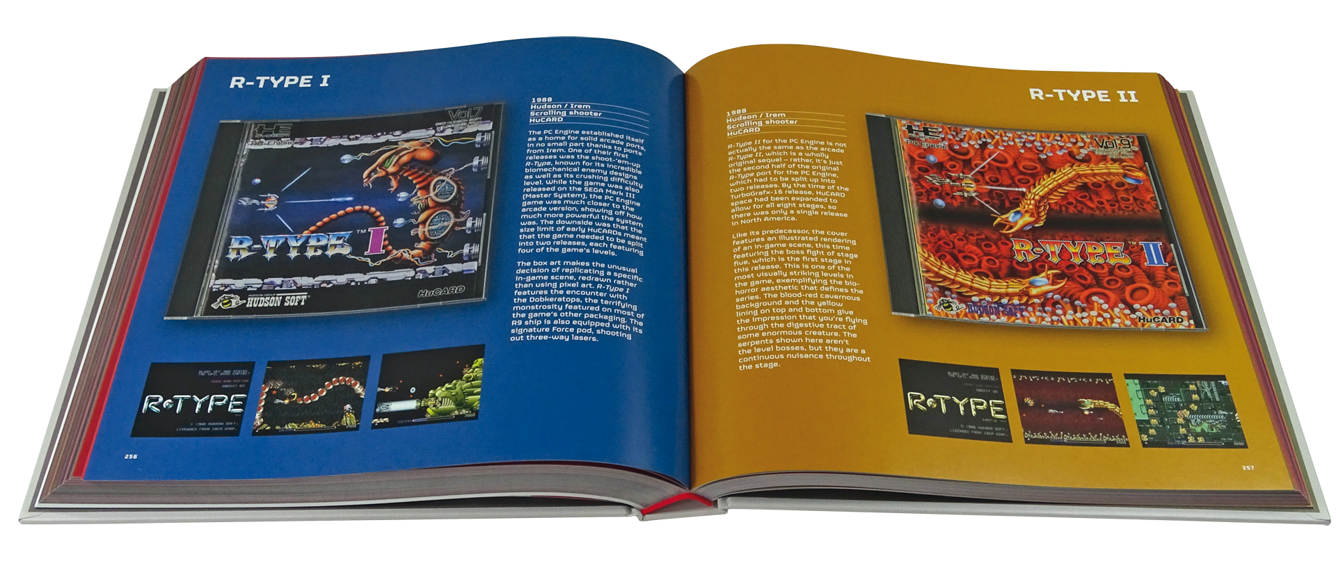 MERING • Nach dem Super Famicom und dem Game Boy versorgt Bitmap Books nun die in Europa eher unbekannte PC Engine mit einer Box Art Collection. Der stabile Hardcover-Schmöker mit 372 wertigen Seiten und nüchternem Einband weicht strukturell leicht von seinen Vorgängern ab: Im Gegensatz etwa zum Super-Famicom-Wälzer beleuchtet das neue Werk nach einem Vorwort erst einmal ausführlich die Geschichte der titelgebenden Hardware, bevor es zur Cover-Galerie geht. Eine gute Idee, schließlich ist die PC Engine beziehungsweise das TurboGrafx-16 beziehungsweise das Core Grafx von NEC längst nicht mehr jedem Gamer ein Begriff. Zu Unrecht: Die kompakte Konsole von 1987 erlebte in den USA und Europa zwar nur ein kurzes Gastspiel, in Japan war das Gerät mit seinen charmanten HuCards (später auch CD-ROMs) aber durchaus bekannt und machte vor allem Shoot’em-Up-Fans mit Tophits wie R-Type, Gunhed, Final Soldier, Darius Plus und Gradius II: Gofer No Yabou glücklich.