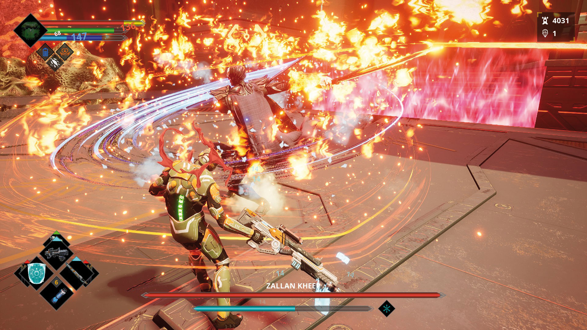 Unter dem Label Prime Matter (Koch Media) erscheint mit Dolmen ein Weltraum-Soulslike, das sich jedoch in unserer Anspielsession geradliniger als ähnliche Vertreter wie Hellpoint zeigt und in Sachen Atmosphäre noch recht grobschlächtig wirkt. Eure Batterieenergie dient Euch hier als Heilung und Munitionsvorat für Eure Waffe, die jedoch zumindest zu Beginn nur wenig Schaden anrichtet. Trotzdem lohnt sich der Einsatz, etwa um Statuseffekte mit Eis- oder Feuerschüssen auszulösen. Auch im Nahkampf könnt Ihr Euch ”überladen” und Eure Gegner so kurze Zeit effektiver bearbeiten. Während wir uns zu Beginn im noch sehr düsteren Alienbau mit einer riesigen Spinne anlegen, bekommen wir es nach einem Zeitsprung auf der wüstenartigen Planetenoberfläche mit riesigen Lasermaschinen und Gewehrschützen zu tun. Da hier das Gelände sehr offen ist, arbeiten wir uns vorsichtig vor, da wir sonst von vielen Seiten beschossen werden und uns unser Energieschild hier nur frontal schützen kann. Ressourcen zum Herstellen besserer Ausrüstung erhaltet Ihr regelmäßig von besiegten Gegnern, doch um diese anzulegen, benötigt Ihr erst mal bestimmte Charakterwerte. Wir hoffen, dass die Entwickler sowohl an der dürftigen Präsentation als auch an den Kämpfen (denen fehlt es aktuell an Wucht) noch schrauben werden.