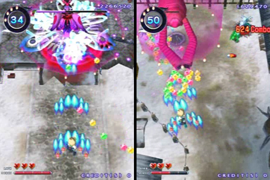 Eingefleischte Shoot’em-Up-Fans kennen und schätzen die Ballerspiele der japanischen Firma G.rev (z.B. Border Down, Under Defeat). Jetzt bestätigte der Entwickler endlich einen Konsolenumsetzung des im letzten Jahr erschienenen Shooters Mamonoro. Der Titel wird bereits im Juni für Xbox 360 erscheinen – vorerst natürlich Japan-exklusiv. Damit bestätigt sich ein Trend – wer in den Genuss von HD-Shoot’em-Ups kommen will, für den ist eine Xbox 360 ein Muss. Die Besonderheit von Mamonoro ist weniger die knallbunte Optik, viel ungewöhnlicher ist, dass Ihr horizontales Scrolling selbst auslösen und deswegen auch nach unten fliegt dürft; praktischerweise könnt Ihr in alle Himmelsrichtungen feuern. Die 360-Version soll neben einer DVD mit Tipps und Tricks auch eine Soundtrack-CD beinhalten.