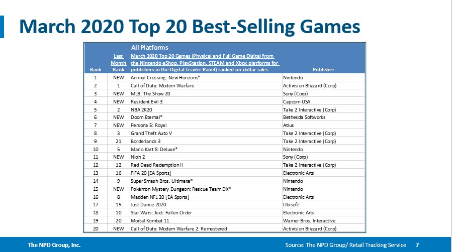 Die NPD Group hat die März-Zahlen für US-Markt veröffentlicht (detailliert nachzulesen bei DualShockers). Demnach waren dort im vergangenen Monat Animal Crossing: New Horizons und die Nintendo Switch am gefragtesten, wobei alle Konsolen kommerziell sehr erfolgreiche Wochen erlebten.