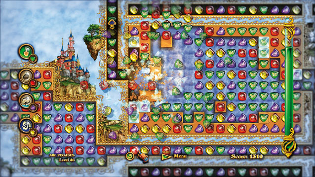 Auf den ersten Blick scheint hier alles auf das klassische Columns– bzw. Bejeweled-Konzept hinauszulaufen: Verschiebt bunte Steine wenn sich drei gleichfarbige berühren, verschwinden sie und es hagelt Punkte. 4 Elements HD wertet dieses Prinzip durch ein paar Spezialsteine sowie interessant gestaltete Spielfelder auf, bei denen Ihr den Weg für eine Flüssigkeit freiknobeln sollt. An das spaßige Puzzle Quest erinnern zudem Eure Spezialmanöver und kleine Rollenspiel-Elemente: Zwischen den Knobelrunden könnt Ihr Eure Burg mit verschiedenen Verteidigungsanlagen aufmöbeln. Ihr könnt übrigens optional auch per Move-Controller rätseln, mit dem normalen Joypad fühlt sich 4 Elements HD aber deutlich besser an.