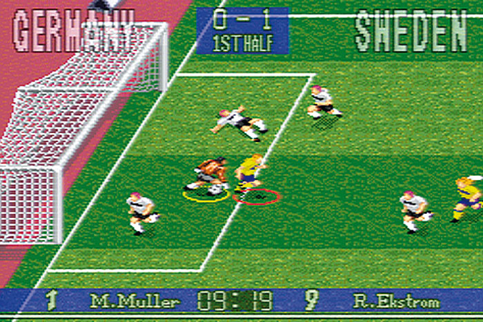 Die 90 Minutes-Grafik ist konventionell mit biederer Seitenansicht. Die Steuerung konzentriert sich auf die klassische Troika “passen/schießen/flanken” nebst Brachialgrätschen in der Abwehr. Tore fallen meist nach hohen Bällen im Strafraum, da der Torwart vom Drang besessen ist, das Leder aus der Luft zu pflücken: Hoch zum Kopfball und rein damit! Nur anfänglich amüsant sind die gelegentlichen ”Nahkämpfe” zweier Feldspieler. Nach kurzer Kraftschinderei bei Nahaufnahme flitzt der Zweikampfsieger mit dem Leder davon.