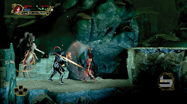 Stufe um Stufe müsst Ihr Euch in die Tiefe kämpfen. Der Aufbau der 2D-Stages ist dabei zufallsgesteuert. Der Schwierigkeitsgrad ebenfalls, er hängt aber auch davon ab, wie tief Ihr Euch bisher hinuntergewagt habt. Bei Eurem Abstieg stellen sich Euch zahlreiche fantastische Wesen in den Weg, alles Ausgeburten der Träume des Hexers. Da ist zum Beispiel der Pfauenmann, dem Pilze auf dem Rücken wachsen, oder die Rehfrau mit ihrer tödlichen Hellebarde. Euer Gegenmittel: ein simples Kampfsystem, bestehend aus Schlägen, Blocks und Spezialattacken.